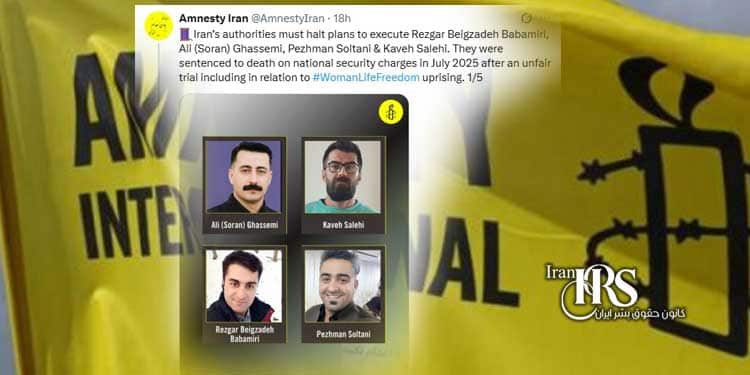 به گزارش روز پنجشنبه کانون حقوق بشر ایران، این چهار زندانی سیاسی، در تیرماه ۱۴۰۴ به اتهاماتی مربوط به امنیت ملی و در ارتباط با اعتراضات سراسری محاکمه و به اعدام محکوم شدند. عفو بین الملل با محکوم کردن روند قضایی این پروندهها تأکید کرده است که این احکام نه تنها فاقد مبانی عادلانه حقوقی هستند، بلکه بر پایه اعترافات اجباری و تحت شکنجه صادر شدهاند.