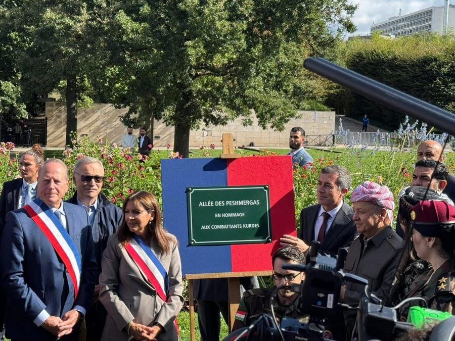مسعود بارزانی، رهبر حزب دموکرات کردستان و رئیس پیشین اقلیم کردستان عراق، روز جمعه ۵ سپتامبر ۲۰۲۵ به پاریس سفر کرد. این سفر بهطور رسمی اعلام نشده بود و در جریان آن مراسمی ویژه به یاد نیروهای پیشمرگه در پارک André-Citroën برگزار شد. در این مراسم، نام یک مسیر به «پیشمرگه» تغییر یافت و پلاکی یادبود برای بزرگداشت نقش این نیروها نصب شد.