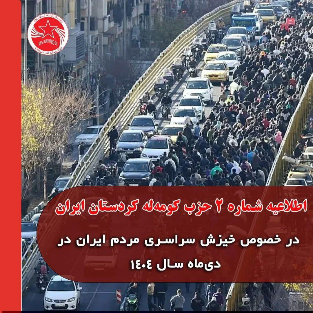 حزب کومهله کردستان ایران، همانگونه که در نخستین روزهای این خیزش اعلام داشت، قاطعانه از خواستههای برحق و اعتراضات مردمی در سراسر ایران حمایت میکند. ما سرکوب وحشیانه معترضان را به شدت محکوم کرده و مسئولیت هرگونه کشتار، خشونت و نقض حقوق بشر را مستقیماً بر عهده جمهوری اسلامی و رهبران آن میدانیم. در این راستا، از تمامی اقشار و اصناف گوناگون جامعه میخواهیم با پیوستن به اعتصابات سراسری و اعتراضات خیابانی، این خیزش را تقویت کرده و تعمیق ببخشند. همچنین، از جامعه جهانی، سازمان ملل متحد، اتحادیه اروپا، ایالات متحده و سایر مجامع بینالمللی میخواهیم که با اعمال فشارهای همهجانبه، تحریمهای هدفمند و حمایت دیپلماتیک از معترضان، حق اعتراض مسالمتآمیز مردم ایران را به رسمیت شناخته و مانع از ادامه سرکوب و کشتار شوند.