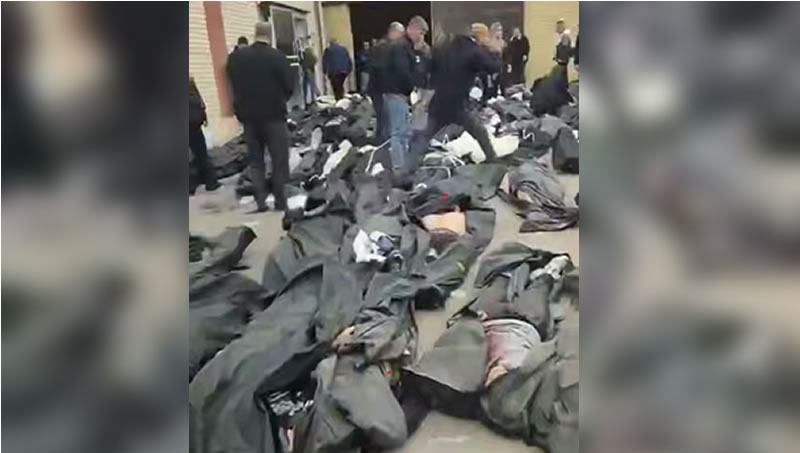 در یک ویدیو عکس جسد و نام کشتهشدگان بر صفحه کامپیوتر نمایش داده میشود که ظاهرا کامپیوتر پزشکی قانونی کهریزک است. بر اساس آنچه بر این صفحه دیده میشود تعداد اجساد شاید تا ۲۵۰ نفر باشد. در این ویدیوها جسدهای زیادی در کاور سیاه در محوطه پزشکی قانونی کهریزک دیده میشوند که فقط بعضی از آنها شناسایی شدهاند. در یک ویدیو داخل یک سوله دیده میشود که در آن چندین جسد قرار دارد. در ویدیوی دیگری کامیونی نشان داده میشود و افرادی که در حال تخلیه اجساد از آن هستند.