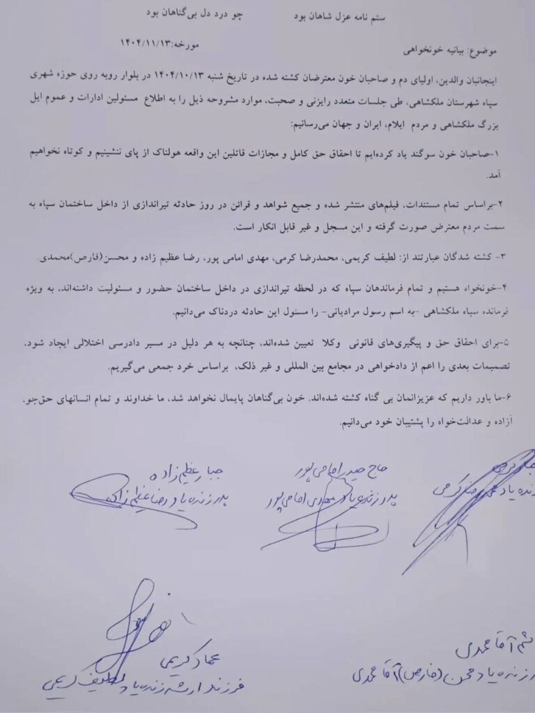 این دادخواهی، فقط یک نامه نیست؛ شهادتِ یک شهر است. شهادتِ پدران و مادرانی که داغِ فرزند را به دوش میکشند و با این حال، بهجای سکوتِ تحمیلی، راه سختِ مطالبه را انتخاب کردهاند. وقتی خانوادهها با نام و امضا، با جملههای روشن و بیپرده مینویسند «کوتاه نخواهیم آمد»، یعنی میخواهند حق را از میان گردوغبارِ انکار بیرون بکشند؛ یعنی نمیگذارند خونِ بیگناهان در هیاهوی تهمت و وارونهگویی گم شود.