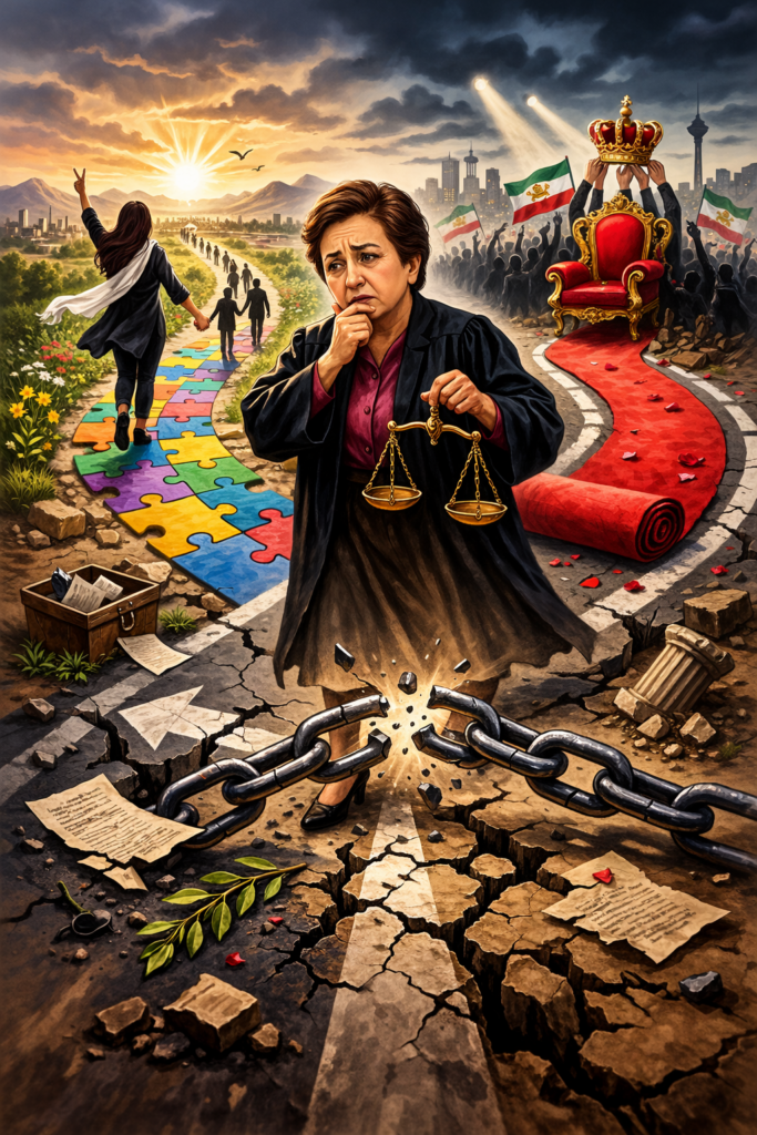 خانم عبادی، شما در مجلس سنای فرانسه پس از مدتی سکوت، با پذیرش رهبری فردی آقای پهلوی، موضعی اتخاذ کردید که با برخی دیدگاههای پیشینتان فاصله دارد. بیتردید شما بهعنوان حقوقدانی برجسته، بهتر از هر کسی میدانید که حقوق بشر، اصل بنیادینِ کرامت انسان است و هیچ گذار سیاسیِ پایداری بدون پایبندی به آن ممکن نیست. با این حال، پرسشِ اساسی این است که آیا در شرایط پیچیده و متکثرِ امروز ایران، بازگشت به الگوی رهبریِ فردمحور میتواند تضمینکننده دموکراسی و حقوق بشر باشد؟